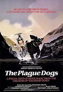 The Plague Dogs is a 1982 British-American animated adventure film, based on the 1977 novel of the same name by Richard Adams. It was written, directed and produced by Martin Rosen, who also directed Watership Down, the film adaptation of another novel by Adams. The Plague Dogs was produced by Nepenthe Productions; it was released by Embassy Pictures in the United States and by United Artists in the United Kingdom. The film was rated PG-13 by the MPAA for heavy animal cruelty themes, violent imagery, and emotionally distressing scenes. The Plague Dogs is the first non-family-oriented MGM animated film.