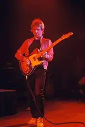 The bleached-blond hair that became a band trademark happened by accident. In February 1978, the band, desperate for money, was asked to do a commercial for Wrigley's Spearmint chewing gum (directed by Tony Scott) on the condition they dye their hair blond.[24] The commercial was shot with the band, but was shelved and never aired.[25]