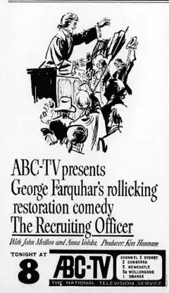 The Recruiting Officer is a 1965 Australian television production based on the famous play The Recruiting Officer, which was the first play ever performed in Australia.