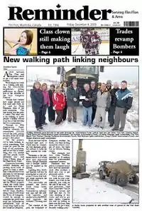 The Reminder (formerly The Flin Flon Daily Reminder and The Daily Reminder) is a weekly newspaper published every Wednesday in Flin Flon, Canada, a city located on the border of Manitoba and Saskatchewan.[4][5] It is the only locally published newspaper in the area (which includes adjacent Creighton, Saskatchewan, Denare Beach, Saskatchewan and Cranberry Portage, Manitoba).
