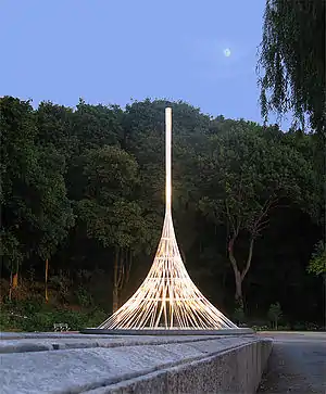 The Rising is a memorial located in the Kensico Dam Plaza of Valhalla, Westchester County, New York, created by architect Frederic Schwartz. It stands against the backdrop of Kensico Dam, commemorating the September 11 attacks on America and remembering in a special way the men and women from Westchester County who were victims of those attacks.[1]