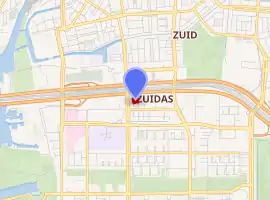 The building distinguishes itself by the crooked glass, aluminum, stone and concrete elements. The building seems to be much heavier at the upper parts compared to the lower area. The design is very rough and feels like a rock. It is one of the tallest buildings at the Zuidas in Amsterdam.