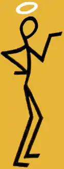 Simon Templar is a Robin Hood-like figure known as the Saint – plausibly from his initials, but the exact reason for his nickname is unknown (although the reader is told that he was given it at the age of nineteen). Templar has aliases, often using the initials S.T. such as "Sebastian Tombs" or "Sugarman Treacle". Blessed with boyish humour, he makes humorous and off-putting remarks and leaves a "calling card" at his "crimes," a stick figure of a man with a halo over his head. This is used as the logo of the books, the films, and the three TV series. He is described as "a buccaneer in the suits of Savile Row, amused, cool, debonair, with hell-for-leather blue eyes and a saintly smile".[1]