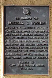 Commemorative plaque in Washington, D.C. marking the site at 601 Pennsylvania Avenue where "The Star-Spangled Banner" was first publicly sung