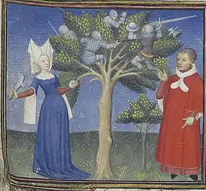 This poem was finished by Christine in the above-mentioned year 1429, on the day that ends July. But I understand that some people will not be satisfied with its contents, for if one's head is lowered and one's eyes are heavy one cannot look at the light. Followed by, Perhaps the last written words by Pizan: Here ends a most beautiful poem written by Christine.[1]