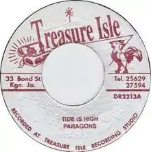 "The Tide Is High" was written by John Holt and originally recorded by the Paragons (the rocksteady vocal trio of which he was a member), and accompanied by Tommy McCook and the Supersonic Band. It was produced by Duke Reid and released as a 7-inch single on Reid's Treasure Isle and Trojan labels and as the B-side of the single "Only a Smile".[3]