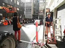On October 8, 2012, production returned to Sydney with filming on Erskine Street near Cockle Bay.[72] The following week, the film shot in Parramatta, which doubled as a Japanese city.[73] Also in October, Mangold revealed that the film follows the events of X-Men: The Last Stand, saying, "Where this film sits in the universe of the films is after them all. Jean Grey is gone, most of the X-Men are disbanded or gone, so there's a tremendous sense of isolation for [Wolverine]."[74] Mangold later stated that in the fight scenes, "there's an urgency and a kind of intensity and hand to hand physicality that I hope is a little different than everything else out there."[14] On October 25, 2012 production relocated to Sydney Olympic Park in western Sydney.[75] The set was made into a Japanese village draped in snow with filming beginning on November 1, 2012.[76] On November 10, 2012, filming took place on a back street in Surry Hills. The set, constructed on Brisbane St., was transformed to look like a Japanese street with Japanese signage and vehicles scattered throughout.[77] Principal photography concluded on November 21, 2012.[78]