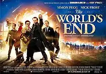 The World's End is a 2013 science fiction comedy film directed by Edgar Wright, written by Wright and Simon Pegg, and starring Pegg, Nick Frost, Paddy Considine, Martin Freeman, Eddie Marsan and Rosamund Pike. The film follows five friends who discover, during an epic pub crawl, that there is an alien invasion in their hometown.