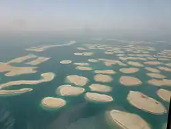 The World Islands, (Arabic: جزر العالم; Juzur al-Ālam) is an archipelago of small artificial islands constructed in the shape of a world map, located in the waters of the Persian Gulf, 4.0 kilometres (2.5 mi) off the coast of Dubai, United Arab Emirates.[1] The World islands are composed mainly of sand dredged from Dubai's shallow coastal waters, and are one of several artificial island developments in Dubai.[1] The World's developer is Nakheel Properties, and the project was originally conceived by Sheikh Mohammed bin Rashid Al Maktoum, the ruler of Dubai. The construction was done by two Dutch (joint venture) specialist companies, Van Oord and Boskalis. The same companies also created the Palm Jumeirah.