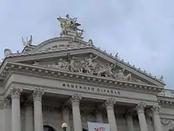 - pediment sculpture and all other facade sculpture, State Opera, Prague, for Fellner & Helmer and other architects, 1888[3]