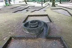 In 1929, a Comissão de Iniciativa (Initiative Commission) introduced improvements at the thermal station. Sections of the women's bathrooms were remodelled, in addition to the installation of a laboratory on site to analyze the waters, as well as an extension that acted as pharmacy.[1] The administrative council also deliberated on expropriation of lands that pertained to the Viscountess of Peso.[1] On 23 March 1930, a notice was issued to attribute a Sevilha Exposition gold medal to the waters of Melgaço. Arborization of the park continued in May, with the planting of trees to provide shade, in addition to flowering plants and fruit trees.[1] Notice on the opening of the change rooms was issued on 8 June, under the direction of Dr. Athias Ark, in addition to providing information on pricing practiced at the site.[1] An article published in August, by the Notícias de Melgaço, referred to the avenues of the park that crossed the property east to west, that connect a new spring that had been discovered, covered in a wooden structure.[1]