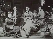 Thomas Glover (Japanized as Gurabā or Kuraba) also adopted a British-Japanese son, later named Kuraba Tomisaburō (倉場 富三郎) (1870–1945), who was born in Nagasaki and went on to make important contributions to the economy of this city in the late 19th and early 20th centuries. Tomisaburō married Nakano Waka (中野 ワカ), also of mixed British and Japanese descent. Official household registers preserved at Nagasaki City Hall indicate that Tomisaburō was the son of a woman named Kaga Maki (加賀 マキ).[9] Kaga Maki married a Japanese man and died in Nagasaki in 1905.