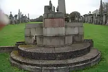 When the Glasgow College buildings in the High Street were demolished, Reid’s remains were placed with those of other professors and their families in the Professors’ Monument in the Glasgow Necropolis near Glasgow Cathedral. The Monument is at the south end of the sixth row of monuments from the eastern end of the cemetery, and overlooking Reid’s home in Drygate.[3] It has the following inscription: "In memory of Professors of the University of Glasgow and members of their family whose bodies were interred in Blackfriars Churchyard and removed here in 1876."