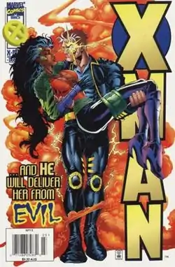 ![]() Cover to X-Man #13 featuring X-Man and Threnody | |
