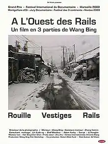 Tie Xi Qu: West of the Tracks (Mandarin: [tʰjè ɕí tɕʰú], 铁西区) is a 2002 Chinese documentary film by Wang Bing. Over 9 hours long, the film consists of three parts: "Rust," "Remnants" and "Rails."