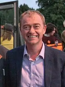 Timothy James Farron (born 27 May 1970) is a British politician who was Leader of the Liberal Democrats from 2015 to 2017. He has been Member of Parliament (MP) for Westmorland and Lonsdale since 2005, prior to entering parliament Farron worked in Higher Education.[1] He serves as the Liberal Democrat Spokesperson for Environment, Food and Rural Affairs.