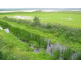 The Tiny Marsh Provincial Wildlife Area, located in Simcoe County, Central Ontario, Canada, is Ontario’s first provincially owned and managed wetland and is one of approximately 1200 Important Bird Areas recognized in Canada. The marsh is situated near Elmvale, approximately three kilometres inland from Nottawasaga Bay.[1]:3 Open to visitors year-round, the area consists of 8.5 square kilometres (3.3 sq mi) of marshes, open water, bog, and upland forest.[1]:3 There are 25 kilometres (16 mi) of trails taking visitors to dikes, two observation towers, a marsh viewing mound, and a boardwalk.[1]:16 There is a nature centre, featuring displays of the marsh and its flora and fauna.
