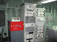 ![]() An ICBM loaded into the silo of the Titan Missile Museum, with a hole cut into the side of the nose cone to show that the weapon is inert. | |