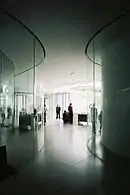 In 2000, the museum chose the architectural firm of SANAA to design a new building to house the institution's glass collection. It was the firm's first commission in the United States. Front Inc. was appointed to assist the architects in developing technical concepts for the glass wall systems.[13] Much of the $30 million Glass Pavilion's financing came through the largest public fundraising drive in Toledo's history.[14] The building's curved glass walls were imported from China.[15]