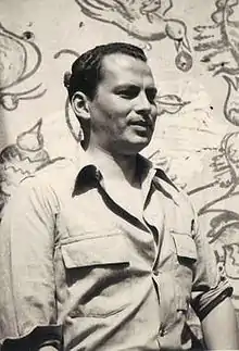 Tomás was one of four children born to José Ignacio Chávez Montes de Oca, a shop keeper, and María de la Luz Morado Cabrera, an amateur painter.[3] His three brothers include José Chávez Morado, Gabriel, and Salvador (who died as a young boy).[4] His mother and maternal uncles who drew sketches were among his first examples of artists.[5] His father also encouraged his creativity by providing him with materials to practice.[6] During the 1918 flu pandemic, also known as the “Spanish flu,” his mother, María de la Luz Cabrera Morado, fell ill and died from influenza.[7] José Ignacio Chávez Montes de Oca remarried and started a new family while his sisters cared for Tomás and his brothers.[8] While in the care of their paternal aunts who often sang, played guitar, and painted, Tomás and José both took a greater interest in art.[9] Tomás completed his primary school education.[10] During this time he worked in his father's grocery store, where it appeared that he might become a merchant like his father.[11] Tomás felt that this type of work seemed "tedious, enslaving, and boring" and instead immersed himself in the libraries of his paternal grandfather and of the father-in-law of José Ignacio Chávez Montes de Oca.[12] At one point he also worked for the father-in-law of José Ignacio Chávez Montes de Oca (who was a sculptor and print maker who repaired religious images) as a printer and a bookbinder.[13] In 1928, as a teenager, Tomás decided to move to Mexico City to pursue a career in art and teaching at the Escuela Normal Superior and also to connect with his brother, José.[14] His father, who wanted to discourage Tomás from this decision, gave him only two pesos when Tomás asked for money to help him on his new journey.[15] José and Tomás faced a difficult financial situation in Mexico City, having no place to sleep until granted permission by Fernando Leal to sleep at the Centro Popular de Pintura de Nonoalco where José, and eventually Tomás, took classes.[16] After seeing monolith carvings at the Museum of Archaeology, Tomás reaffirmed his commitment to sculpture.[17] He was also exposed to the work of Diego Rivera while visiting La Escuela Muralista.[18] Taking experience and skill from El Centro Popular de Pintura Nonoalco, Tomás began teaching modeling and drawing at primary and secondary public schools in Mexico City. At the same time, he was working in the Department of Museology at the Instituto Nacional de Bellas Artes[19] where he helped rescue the work of José Guadalupe Posada.[20] In 1940, he accepted a commission from the Department of Indian Affairs to lead an indigenous boarding school in the Sierra Tarahumara for the Tarahumara people, an experience that impassioned him to indigenous causes.[21] After four years there, he returned to Mexico City to attend the Escuela Normal Superior (Mexico)[22] to study and become a professor in the field of Visual Arts. He graduated in 1948 with a masters of arts education in the Department of Fine Arts and eventually joined the faculty to depart his knowledge of sculpture onto others.[23] In 1968, after 33 years of teaching under the Secretaría de Educación Pública, Tomás moved back to Guanajuato to retire and dedicate himself to his sculpture.[24] Many students sought out his advice during this time, which lead him to start teaching again in 1985, this time, at the Universidad de Guanajuato.[25] Because the University of Guanajuato did not have appropriate facilities, Tomás instructed his students in his own studio.[26] Between 1990 and 1993, Tomás directed the school of fine arts, improving studio facilities and making needed changes that lead to official approval of the visual arts bachelor's degree program.[27] Tomás continued teaching until health problems (diabetes, blindness, and hearing loss)[28] hindered his teaching and, eventually, his sculpting.[29]