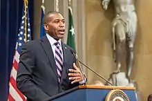 West previously served as the Associate Attorney General of the United States, the third highest-ranking official in the United States Department of Justice; and Assistant Attorney General of the Civil Division, the largest litigating division in the Department of Justice.[22] In September 2014, when Attorney General Eric Holder announced his intention to step down, West was speculated as being a potential successor as the next United States Attorney General.[23][24][25]