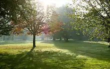 Totterdown Fields estate was designated a conservation area on 19 September 1978. It was the first London County Council cottage estate built between 1901 and 1911, containing 1244 individual houses over 38 acres (15 ha). It was influenced by Ebenezer Howard's Garden city movement and the Arts and Crafts movement.[19]