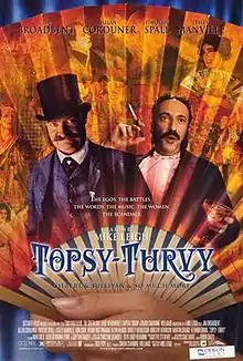 Topsy-Turvy is a 1999 British musical period drama film written and directed by Mike Leigh, starring Allan Corduner as Sir Arthur Sullivan and Jim Broadbent as W. S. Gilbert, along with Timothy Spall, Lesley Manville and Ron Cook. The story concerns the 15-month period in 1884 and 1885 leading up to the premiere of Gilbert and Sullivan's The Mikado. The film focuses on the creative conflict between playwright and composer, and their decision to continue their partnership, which led to their creation of several more Savoy operas.