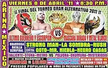 ![]() Official poster for the show, advertising Último Guerrero and Escorpión vs. Metal Blanco and Máscara Dorada in the finals | |||