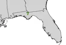 It occurs in two types of habitats restricted to the river drainage, an oak-tupelo-cypress forest or an oak-pine forest.[7] These forests are mostly deciduous, but evergreen hardwoods and conifers are also common.[8] R. M. Harper, who travelled throughout northern Florida by horse and train to document the compositions of various forests, stated in 1914 that the most frequent species in the Apalachicola ravines were Magnolia grandiflora (9.5%), spruce pine (Pinus glabra, 5.6%, American beech (Fagus grandifolia, 4.1%) and the understory Torreya taxifolia (4.0%) and Ilex opaca (3.5%).[33] According to the IUCN the large trees in this habitat are Fagus grandifolia, tulip tree (Liriodendron tulipifera), Acer barbatum, sweetgum (Liquidambar styraciflua), white oak (Quercus alba), and occasionally loblolly pine (Pinus taeda) and Pinus glabra.[1] Magnolias also grow in these woods.[8] Often these woods are hung with vines such as Smilax species and crossvine (Bignonia capreolata).[1] Another rare conifer, the Florida yew (Taxus floridana), occasionally grows with Torreya taxifolia.[1][37] A rare salamander found in these ravines is Desmognathus apalachicolae. The ravines boast the southernmost parts of the ranges of a number of more northern species such as the plants Hydrangea quercifolia, Epigaea repens and Kalmia latifolia and the copperhead snake Agkistrodon contortrix.[37] Upland around these woodlands are flatwoods, which are a longleaf pine/wiregrass (Pinus palustris/Aristida stricta) sandhill plant community.[7][37] It is uncommon in its native habitats, with individuals spaced far apart.[7]