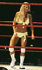 As a fitness competitor, Wilson won the Miss Galaxy competition in 1999.[1][8] Shortly after, she was signed by World Championship Wrestling (WCW), where she stayed from 1999 until 2000.[2][7][8] In 2001, she began appearing on World Wrestling Federation (WWF) television as part of The Invasion (by WCW, of the [then-] WWF) storyline.[5] Her most high-profile storyline took place in 2003 when she feuded with Dawn Marie.[5][9] Wilson has also been a part of the all-female stable (i.e., a group of storyline-associated characters), known as Vince's Devils, which ended its run in 2006.