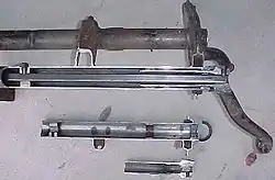 The German World War II Panther tank (and some Tigers) had double torsion bars. Needing bars longer than the width of the tank to get the required spring rate and maximum elastic bend angle from available steel alloys, designer Ernst Lehr created a suspension that effectively folded the bars in half. For each wheel, one rod was attached to the suspension arm, while another was mounted to a nearby point on the frame. On the opposite side of the tank, the two rods were attached to each other and fitted into a pivot. Deflection of the suspension arm caused both halves of the double torsion bar to twist. A disadvantage of the torsion bar suspension used in Tiger and Panther tanks (and many other WWII-era tanks and other AFVs) was the inability to incorporate an escape hatch through the bottom of the hull, a common feature of WWII-era tanks, as the torsion bar arrangement would have blocked crew access to such a hatch; however, the absence of leaf, coil or volute springs often left a large expanse of the side of the hull clear to include a side-escape hatch, and it was rare for a tank to be flipped over in such a way that all top-side hatches were unable to open, which is the purpose of ventral hatches.