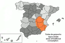 Torta de gazpacho is a type of torta, or flat bread, used to prepare a dish called gazpacho in La Mancha and Southeast Spain, including Murcia and parts of the autonomous community of Valencian.