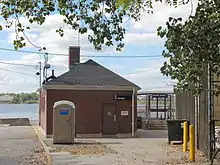 The Tottenville station has been the southern terminus of the Staten Island Railway since the railway was extended to the neighborhood on June 2, 1860. Today, the neighborhood of Tottenville contains the two southernmost stations along the line: Tottenville station (the southernmost railway station in New York state), and Arthur Kill station.[30] Before Arthur Kill opened on January 21, 2017, there were two other stations which were Atlantic (named after the defunct Atlantic Terra Cotta Co. factory nearby) and Nassau (referring to Nassau Smelting and Refining, the original name of the factory later taken over by Lucent Technologies), which closed on the same day that Arthur Kill was opened, as Arthur Kill replaced both of them. Atlantic and Nassau stations are now closed and demolished. The 14-mile trip to the St. George Terminal takes 42 minutes.[31]