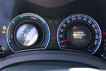 The Auris Hybrid shares the same powertrain and batteries as the Prius.[17] Combined fuel economy is 74.3 mpg‑imp (3.80 L/100 km; 61.9 mpg‑US).[15][18][19] Carbon dioxide emissions (CO2) are 89 g/km on the standard test cycle which allows the model to be exempted from paying Vehicle Excise Duty (for cars registered prior to 1 April 2017) and the London congestion charge.[19] In July 2010, the Auris Hybrid was selected as "WhatGreenCar Car of the Year 2010" by magazine What Car?.[19]