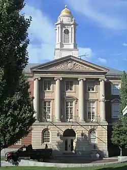 The Traffic Tunnel Administration Building, also known as Boston Police Station Number One, is a historic government building in the North End of Boston, Massachusetts. The building occupies a prominent position facing North End Park off the Rose Kennedy Greenway, and is bounded by the park, North Street, and the trench carrying the exit point of the Sumner Tunnel. The Georgian Revival building was designed by Salem architect John M. Gray and built in 1931. The southern facade, facing the park, was originally used as the administrative facilities for Boston's tunnels, and the eastern facade provided access to the police station. The administration facilities are now used by the local police union,[2] and the police station now houses the North Bennet Street School.