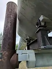 At the end of the pipeline is the Valdez Marine Terminal, which can store 9.18 million barrels (1,460,000 m3) of oil across eighteen storage tanks.[153] They are 63.3 feet (19.3 m) tall and 250 feet (76 m) in diameter. They average 85% full at any given time—7.8 million barrels (1,240,000 m3).[154] Three power plants at the terminal generate 12.5 megawatts each.[155] Four tanker berths are available for mooring ships in addition to two loading berths, where oil pumping takes place. More than 19,000 tankers have been filled by the marine terminal since 1977.[156]
