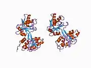 - PDB: 2nsu; Hafenstein S, Palermo LM, Kostyuchenko VA, Xiao C, Morais MC, Nelson CD, Bowman VD, Battisti AJ, Chipman PR, Parrish CR, Rossmann MG (Apr 2007). "Asymmetric binding of transferrin receptor to parvovirus capsids". Proceedings of the National Academy of Sciences of the United States of America. 104 (16): 6585–9. Bibcode:2007PNAS..104.6585H. doi:10.1073/pnas.0701574104. PMC 1871829. PMID 17420467.
