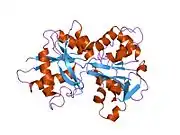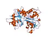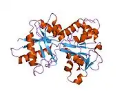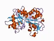 - Hall DR, Hadden JM, Leonard GA, Bailey S, Neu M, Winn M, Lindley PF (January 2002). "The crystal and molecular structures of diferric porcine and rabbit serum transferrins at resolutions of 2.15 and 2.60 A, respectively". Acta Crystallographica. Section D, Biological Crystallography. 58 (Pt 1): 70–80. doi:10.1107/s0907444901017309. PMID 11752780.