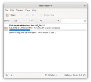 Transmission is a BitTorrent client which features a variety of user interfaces on top of a cross-platform back-end. Transmission is free software licensed under the terms of the GNU General Public License, with parts under the MIT License.[6]