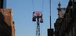 - The Roosevelt Island Tramway, an aerial commuter tram connecting Manhattan to Roosevelt Island. Connecting "Red Bus" service is available on the Island.