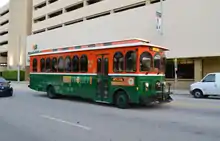 The Greater Miami area,[lower-alpha 1] composed of the three counties of Miami-Dade, Broward, and Palm Beach, also known collectively as South Florida, is home to a wide variety of public and private transportation systems. These include heavy rail mass transit (Metrorail), commuter rail (Tri-Rail), automated guideway transit (Metromover), highways, two major airports (Miami International Airport (MIA) and Fort Lauderdale – Hollywood International Airport (FLL)) and seaports (Port of Miami and Port Everglades), as well as three county-wide bus networks (Miami-Dade Metrobus, Broward County Transit (BCT), and Palm Tran), which cover the entire urbanized area of South Florida. Census and ridership data show that Miami has the highest public transportation usage of any city in Florida, as about 17% of Miamians use public transportation on a regular basis, compared to about 4% of commuters in the South Florida metropolitan area.[4] The majority of public transportation in Miami is operated by Miami-Dade Transit (MDT), which is currently the largest transit system in Florida and was the 14th largest transit system in the United States in 2011.[5]