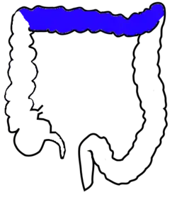 ![]() Drawing of colon seen from front (transverse colon coloured blue) | |