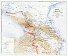 The Treaty of Georgievsk (Russian: Георгиевский трактат, Georgievskiy traktat; Georgian: გეორგიევსკის ტრაქტატი, georgievskis trakt'at'i) was a bilateral treaty concluded between the Russian Empire and the east Georgian kingdom of Kartli-Kakheti on July 24, 1783.[1] The treaty established eastern Georgia as a protectorate of Russia, which guaranteed its territorial integrity and the continuation of its reigning Bagrationi dynasty in return for prerogatives in the conduct of Georgian foreign affairs.[2] By this, eastern Georgia abjured any form of dependence on Persia (who had been its suzerain for centuries) or another power, and every new Georgian monarch of Kartli-Kakheti would require the confirmation and investiture of the Russian tsar.