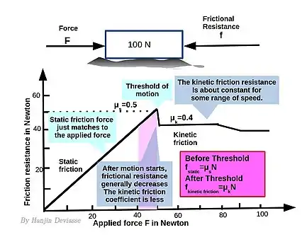 - Friction – Force resisting the relative motion of solid surfaces, fluid layers, and material elements sliding against each other
