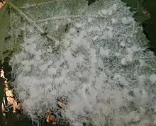 Phylloplecta tripunctata nymphs on underside of leaf of Rubus
