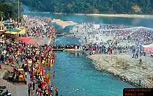 Triveni Ghat is a ghat situated in Rishikesh, Uttarakhand. It is the biggest and most famous ghat in Rishikesh at the banks of Ganges. Triveni Ghat remains overcrowded with devotee to take ritual baths to get cleansed from their sins. It is believed that the ghat was visited by Lord Krishna when he got hurt by the arrow of Jara – a hunter. Being the most venerated ghat in Rishikesh, Triveni Ghat is even used by devotees to perform the last rites and rituals of their loved ones. The ghat is famed for the Ganga aarti performed to the chants of Vedic hymns. The sight of oil leaves, filled with diya and petals, which are released by devotees, floating on the pristine Ganga and the traditional aarti is a sight to behold. On the bank of Triveni Ghat, one can visit the Gita Mandir and Lakshminarayan Temple. Dawn boat ride along the Ganges is a must on a short tour to Triveni Ghat.