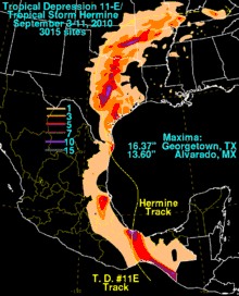 - David M. Roth (2010). "Tropical Depression 11E/T. S. Hermine - September 3–11, 2010". Hydrometeorological Prediction Center. Retrieved November 23, 2010.