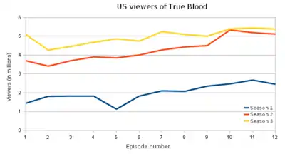 - "True Blood averages 12.4 million per episode across platforms in second season". TV by the Numbers. September 19, 2009. Archived from the original on September 24, 2009. Retrieved May 10, 2020.