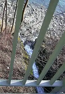 Although the river is only 1.5 kilometres (0.93 mi) long, it has an interesting feature: At one point its waters drop through a height of 12 metres (39 ft) forming the Weissbach Fall, which is audible and visible from the nearby street. A small hotel has built a power plant there and uses the electricity generated for domestic requirements. Around the basin are canals, which divert the water in case of emergency.