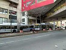 Tufts Medical Center serves both routes of the Washington Street section of the Silver Line, which operates between downtown and Nubian. The SL4 section serves South Station, while the SL5 section serves Downtown Crossing and Boylston. Silver Line buses stop at the primary station entrance on Washington Street.